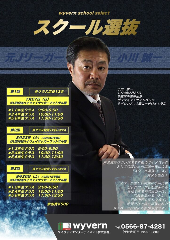 この度、2025年7月よりwyvernサッカースクール【スクール選抜】の設立が決定しましたのでお知らせします。
